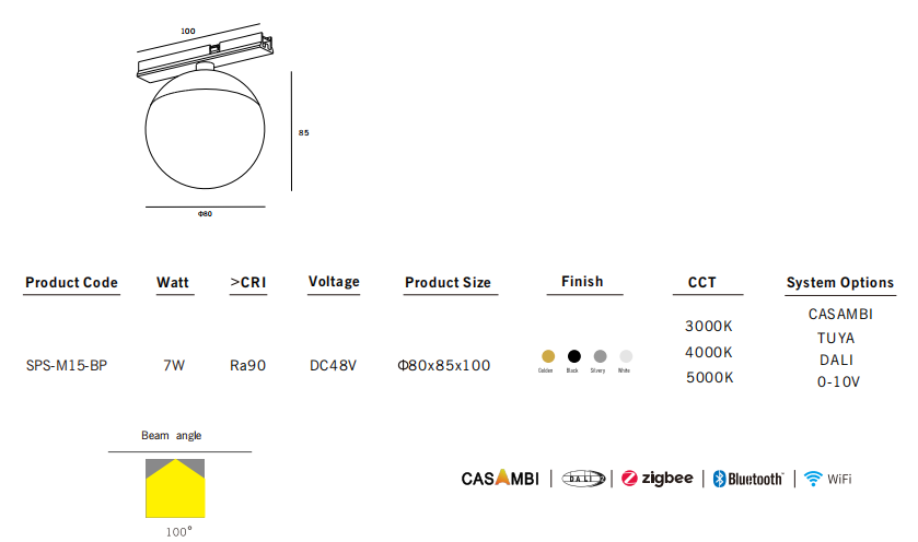 - CCT – 3000K / 4000K / 5000K/Dali/CASAMBI/tuya/0-10v dimmable